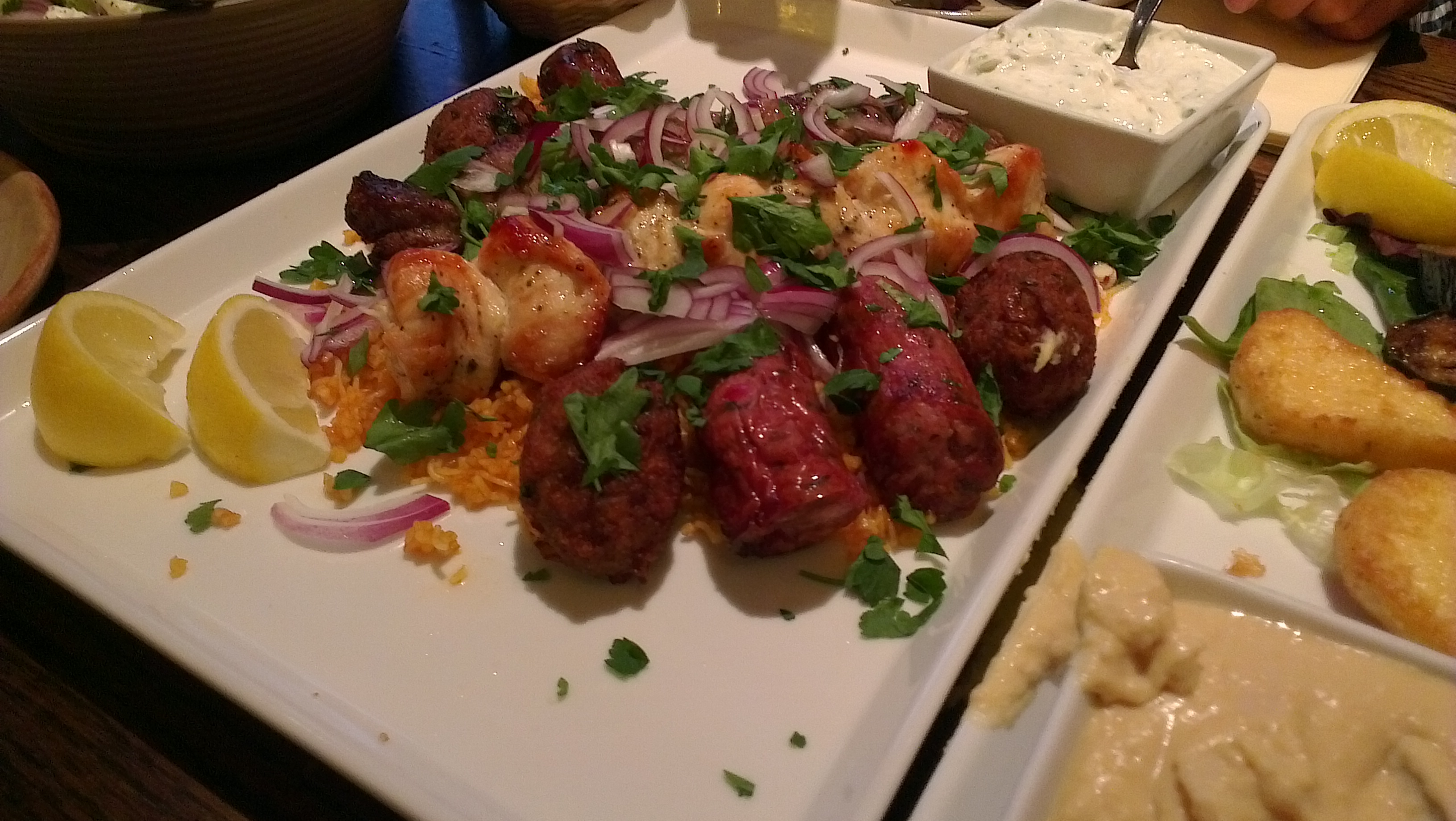 The menu is Meze/Tapas style with most of these small dishes costing between £4-7. We opted for 2 sharing platters; meat and vegetarian which were £25 and £23 respectively. It is worth noting that they have a lunchtime offer of 3 dishes for £6.95 which is a relative bargain in anyone’s book.