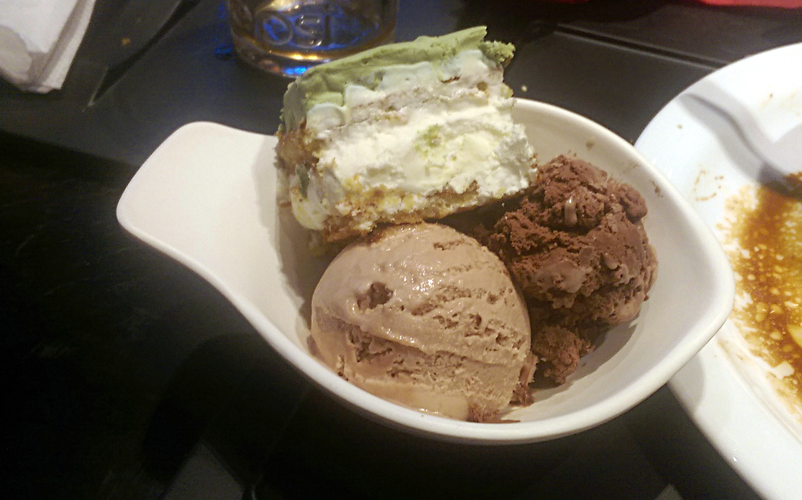 Desserts were maybe the best section of the meal. Of the “mass produced cakes” selection, a pistachio number had light sponge and cream. An ice cream bar was a popular spot and I couldn’t really argue with the chocolate and hazelnut scoops I had.