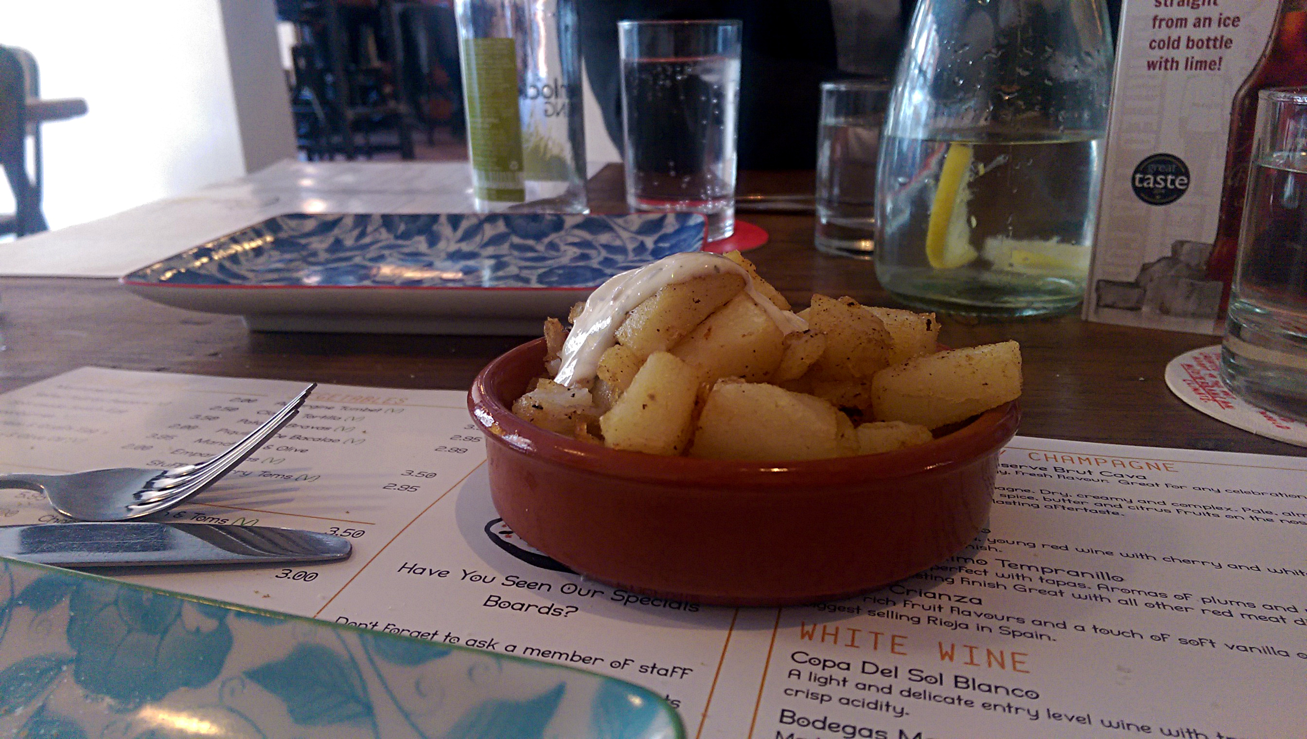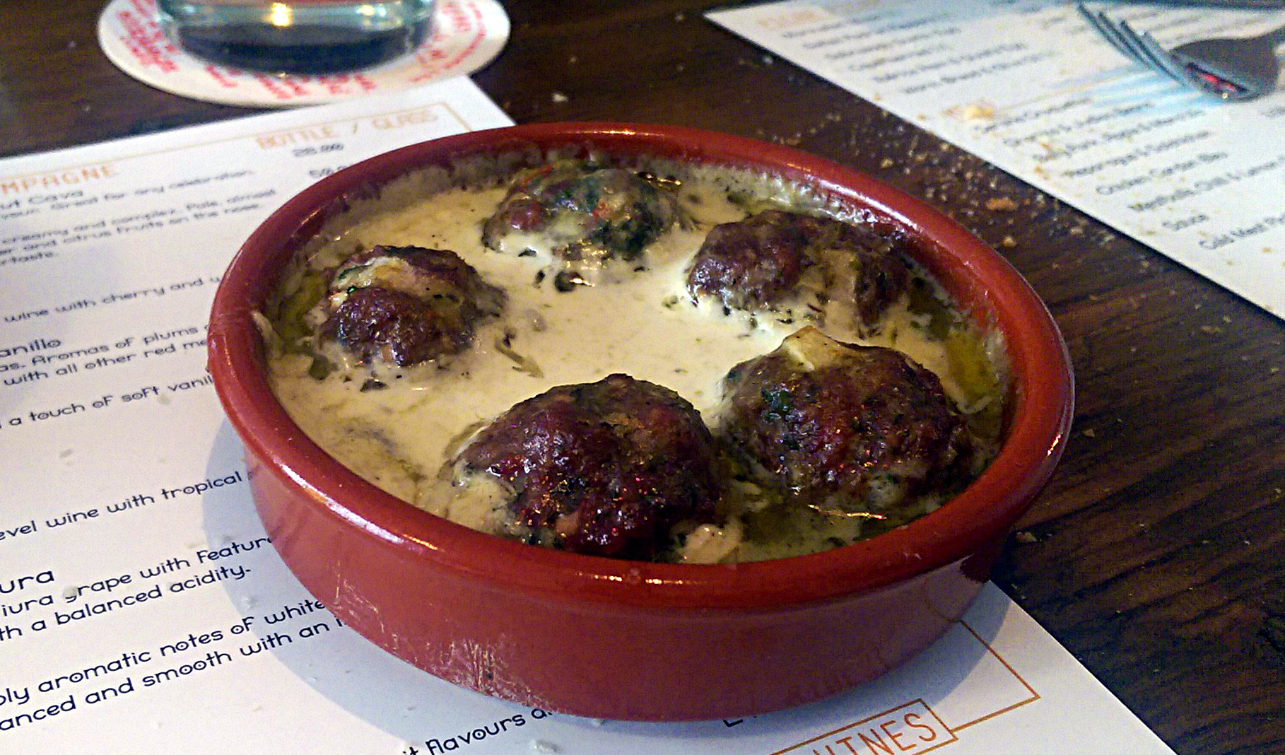 The first dish that arrived was one of those that took inspiration from outside of Spain, outside of Europe in fact. Meatballs were with lemongrass and chilli with some coconut milk. The Asian flavours were perfectly pleasant but I wasn’t quite convinced by the combination. When the Patatas Bravas arrived I did wonder whether they just hadn’t had a delivery of tomatoes. Thai flavoured meatballs and just aioli on the potatoes! They again were ok but I wanted the punchy tomato/paprika sauce to bring them to life.