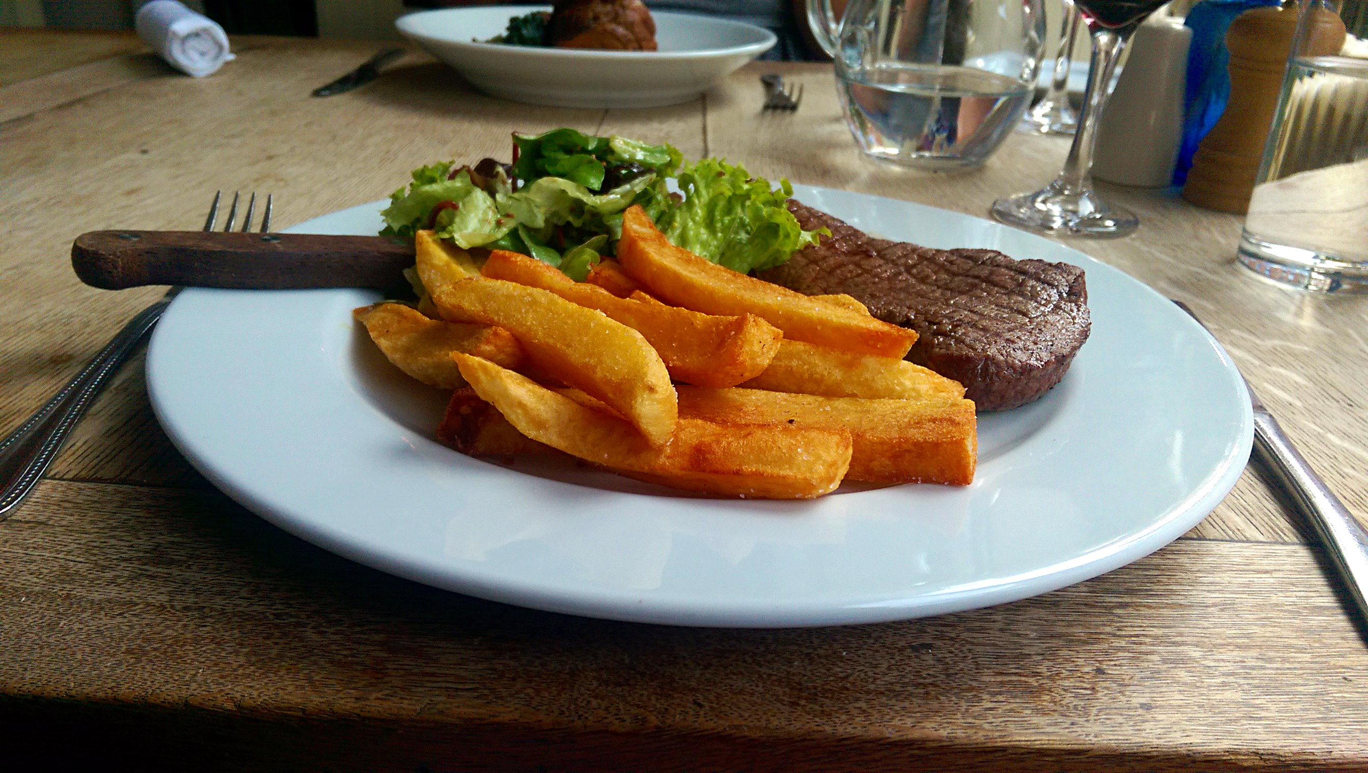 As a starter an ox tongue number appealed as something a little different. Presentation was certainly pretty, the parsley dressing and quails eggs contrasting in colour. I can’t say that the flavours were as vivid, a handful of nice items but I wasn’t convinced it was a cohesive plate of food. I was probably also preoccupied thinking about my steak.