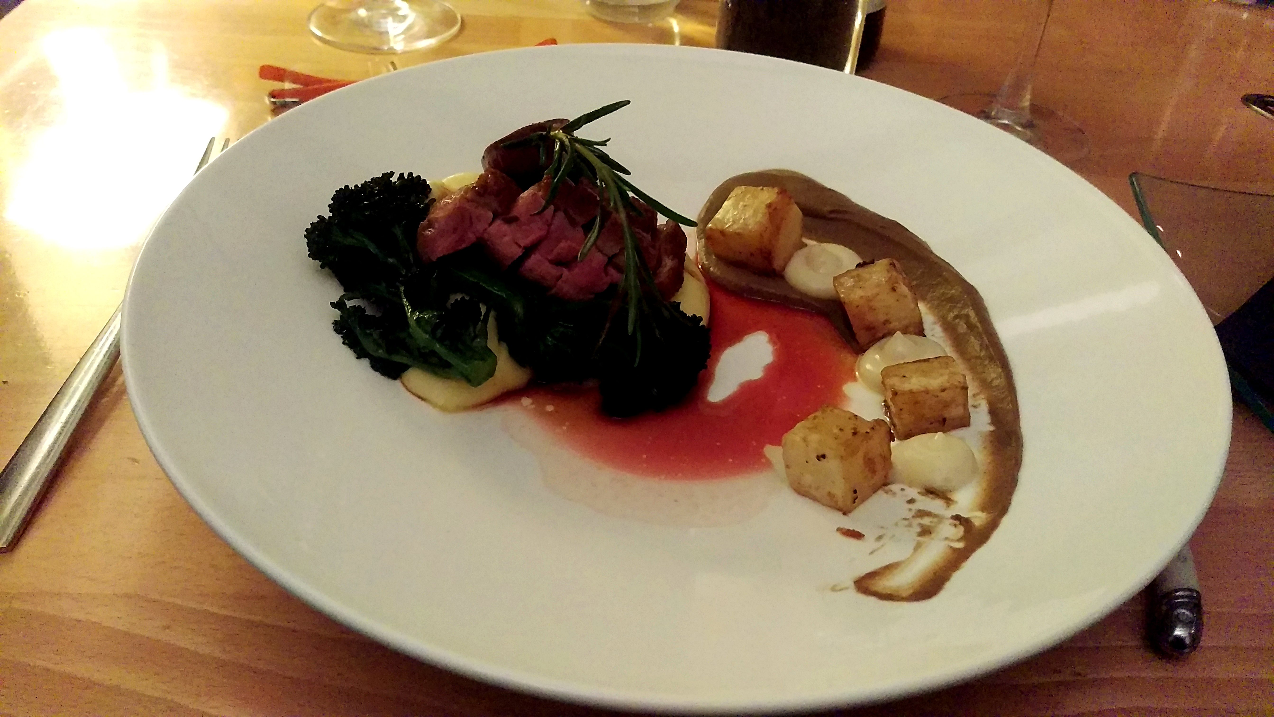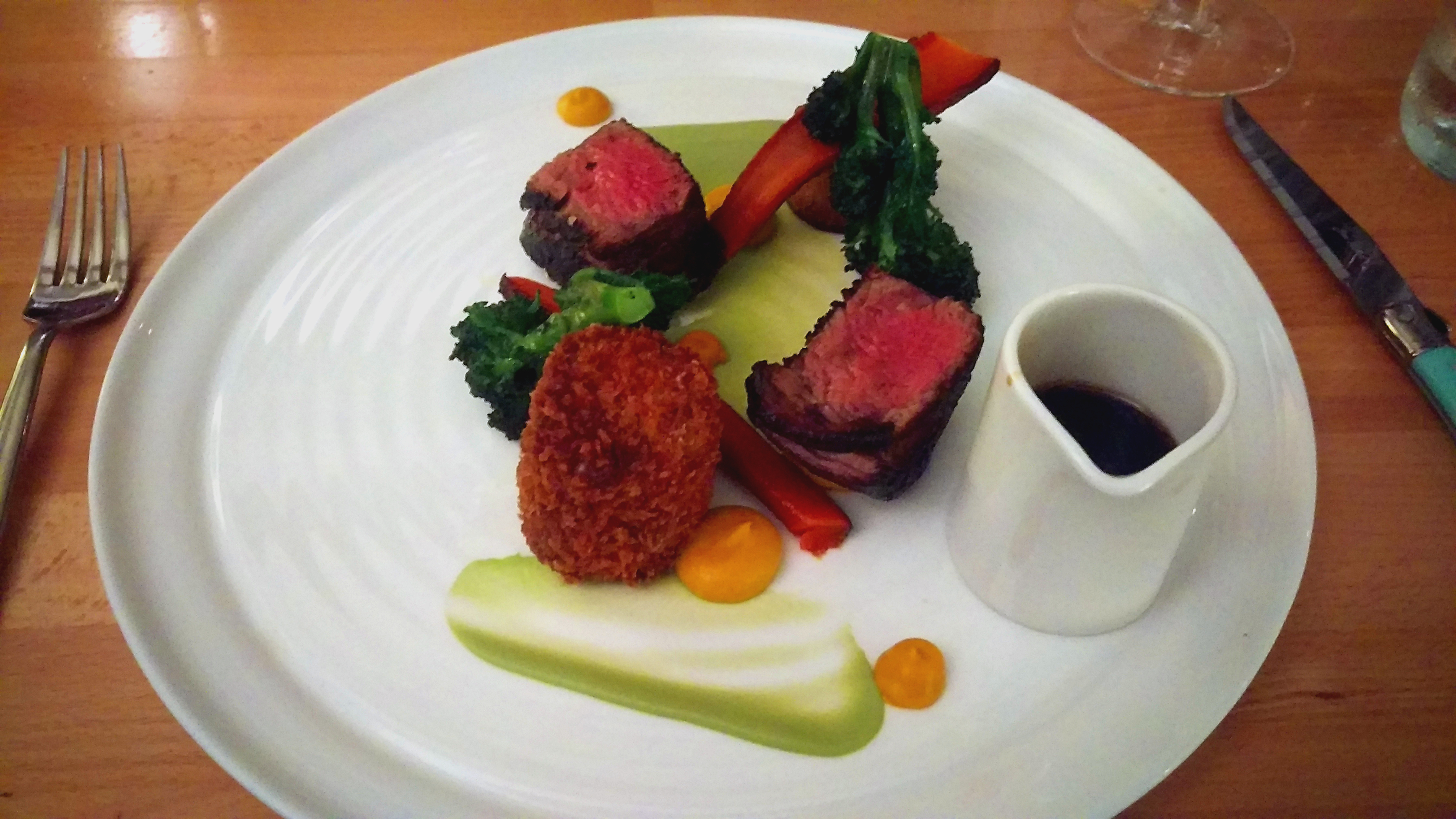Duck is one of my favourites so was at the top of the list for main course. Things didn’t start well with the presentation, the bird seemingly hadn’t been rested long enough and it had ‘bled’ significantly onto the plate. The arty swoosh of mushroom too had been poorly executed, sloppy. Flavours were sound and there was a little pot of confit leg which was tasty, sadly the duck itself was overcooked which really let the whole dish down.