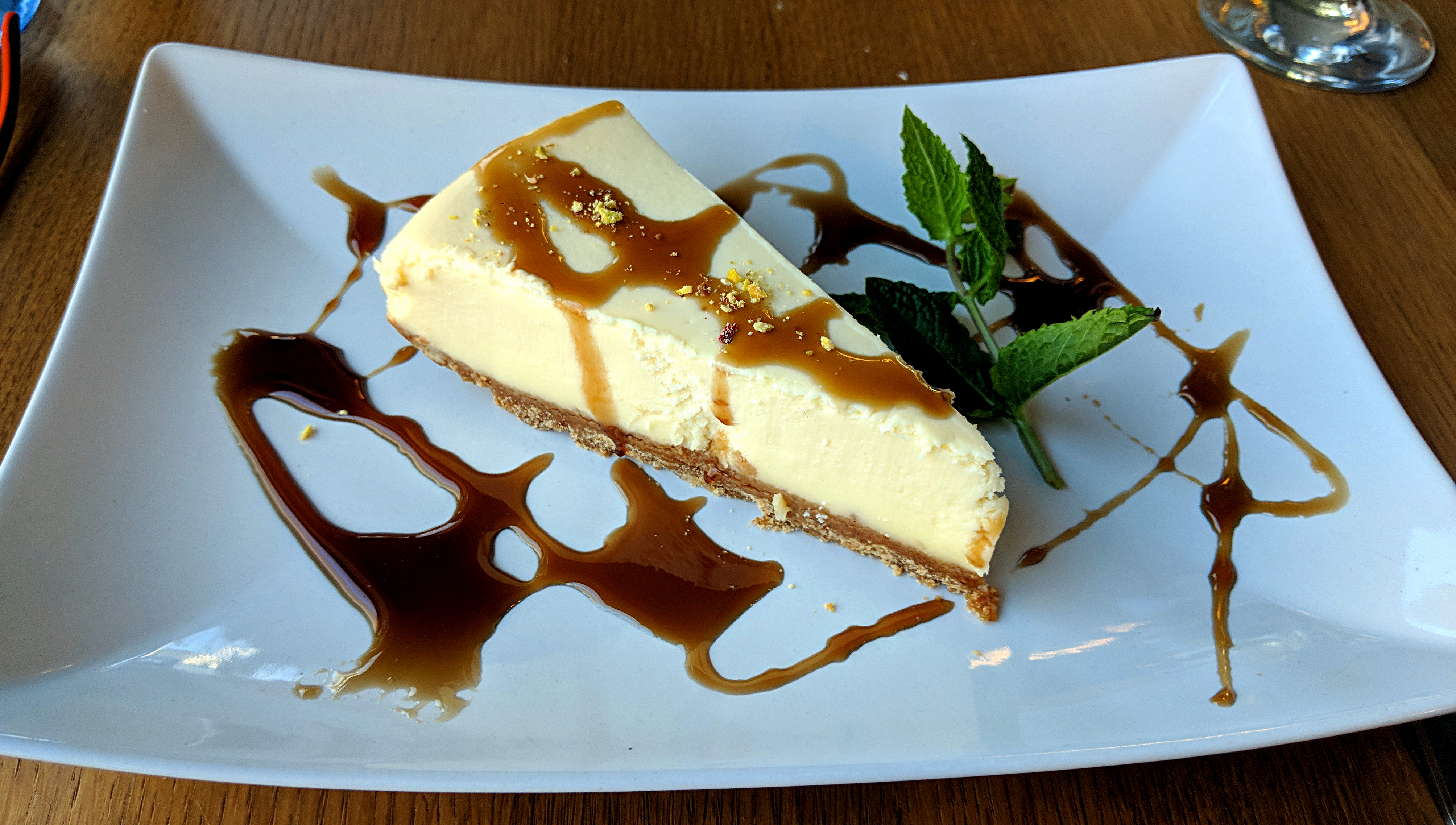I’ve decided one of the most commonly written in restaurant reviews may well be, “after that I didn’t need a dessert… but”. As always in the name of research we solider on and after all the meat a pomegranate cheesecake sounded like it might just be fresh and fruity enough to not feel too guilty. Sadly for today they had decided to substitute real pomegranate with molasses, a common ingredient throughout Iranian cuisine. It still worked well, a sweet stickiness but having that background tang of the concentrated fruit flavour. I did ask and at this point they are buying the cheesecake in and adding the embellishments but intend to make their own as the restaurant beds in.