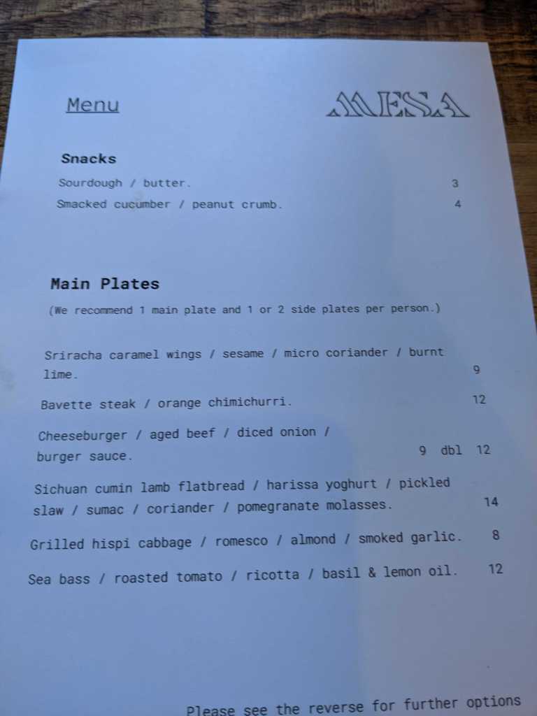 My original Mesa review was published just post Covid and for a couple of years it has been a great and consistent addition to the Nottingham food scene. Marcus, to my understanding the main creative influence behind Mesa, left sometime last year and is now due to open a new venture. Whilst Mesa is still definitely worth a visit the quality and consistency has dripped over the last 6 months in my experience