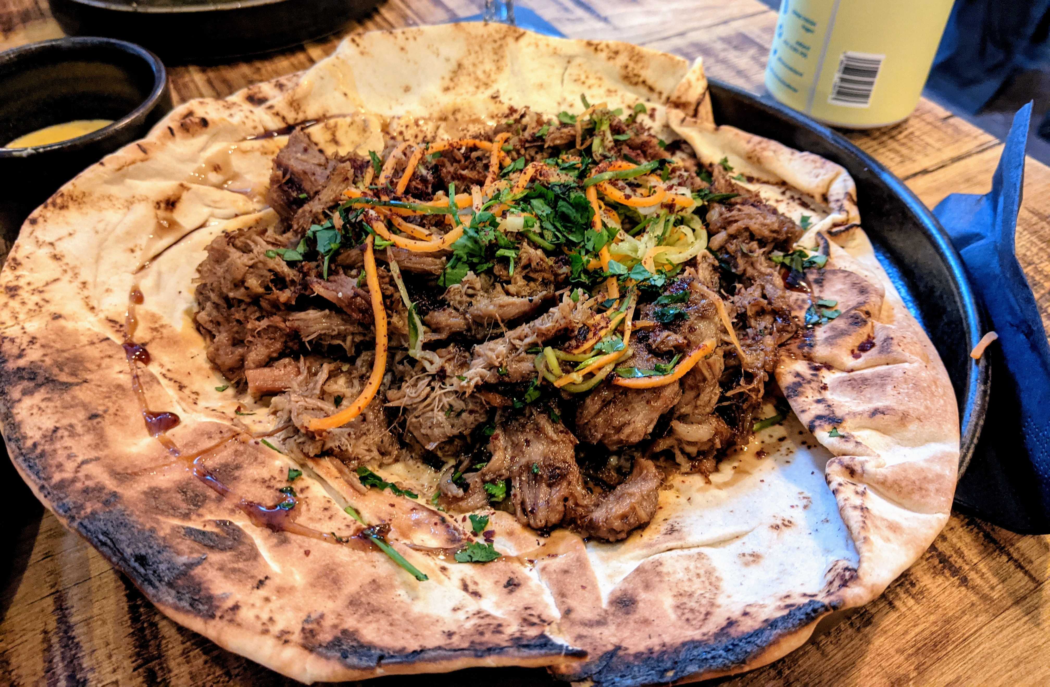 My reviews usually list a cuisine alongside the title of the post, Mesa is already different. The offering ranges from small plates to larger dishes of a wide range of cultures and inspirations. I can’t think of anywhere else with a menu quite like it. As you enter what was Pizza Express in Hockley you get the feeling its a cool place to be, its a bit hipster but casual with an open kitchen creating a buzz of atmosphere between the socially distant bench tables. Cementing my stereotypes the drinks options are really quite good for craft beer with Deya and Track breweries amongst my favourites, but distinctly lacking for wine! The food takes influence from China, USA, the Middle East to name but a few. The suggestion is a “plate” £8-14 and a “side plate” £4-7 would probably suffice as a meal but as there was three of us we just ordered a range of things. One thing to note is that the menu does not list any specifically vegan dishes but mentioned certain dishes could be altered to accommodate dietaries.