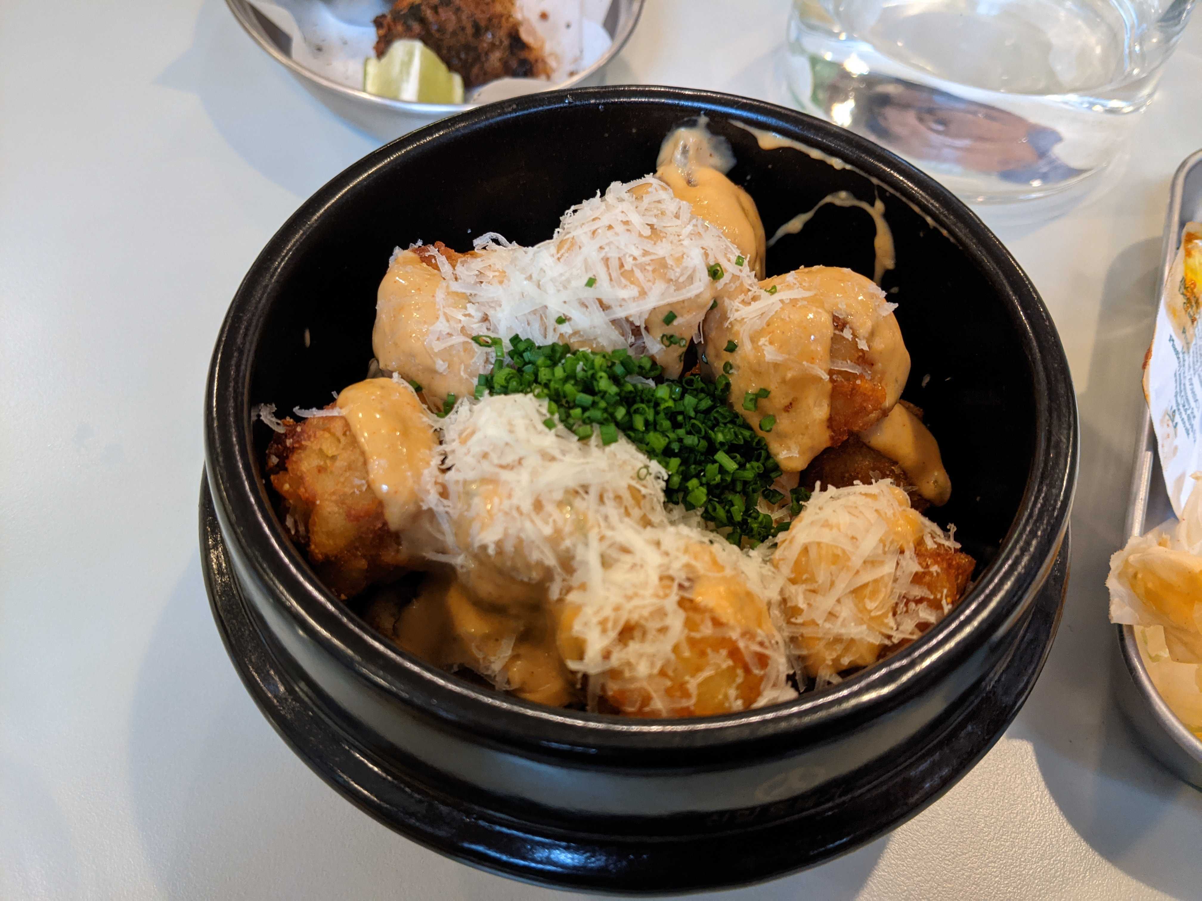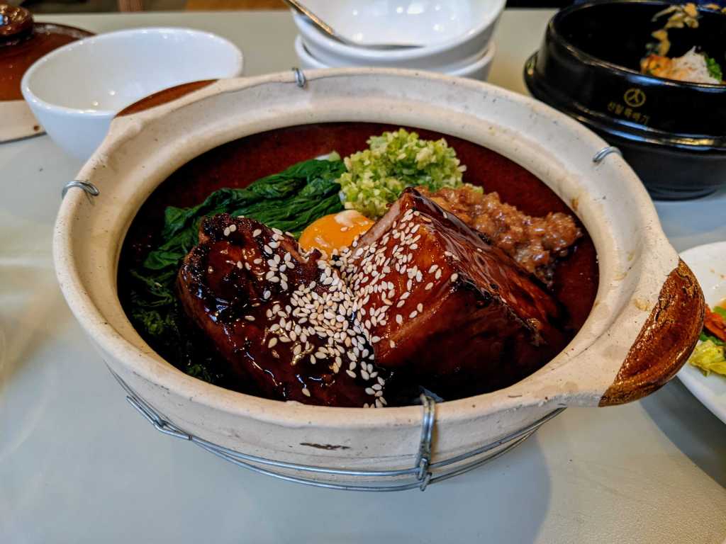 One thing to note was the speedy service, mostly in a good fashion, but our first dish did arrive before the drinks! We started with a small plate of ham hock nuggets. They were pleasantly meaty, rich and salty as you’d expect. The sauce really bought them to life though, the dipping pot of “Kimchi BBQ” was deep maroon and glistening. It was smoky but with a bracing whack of acidity to cut through the nuggets. I might have liked a touch more fire from it but I do like it hot. The Korean wings (£8) followed a similar pattern, their glaze a little sweeter but still packed with flavour. The wings themselves a good size and succulent. I was again looking for a punchier spicing especially alongside the ranch dressing, it was nice but muted the fairly subtle flavours from the wings.