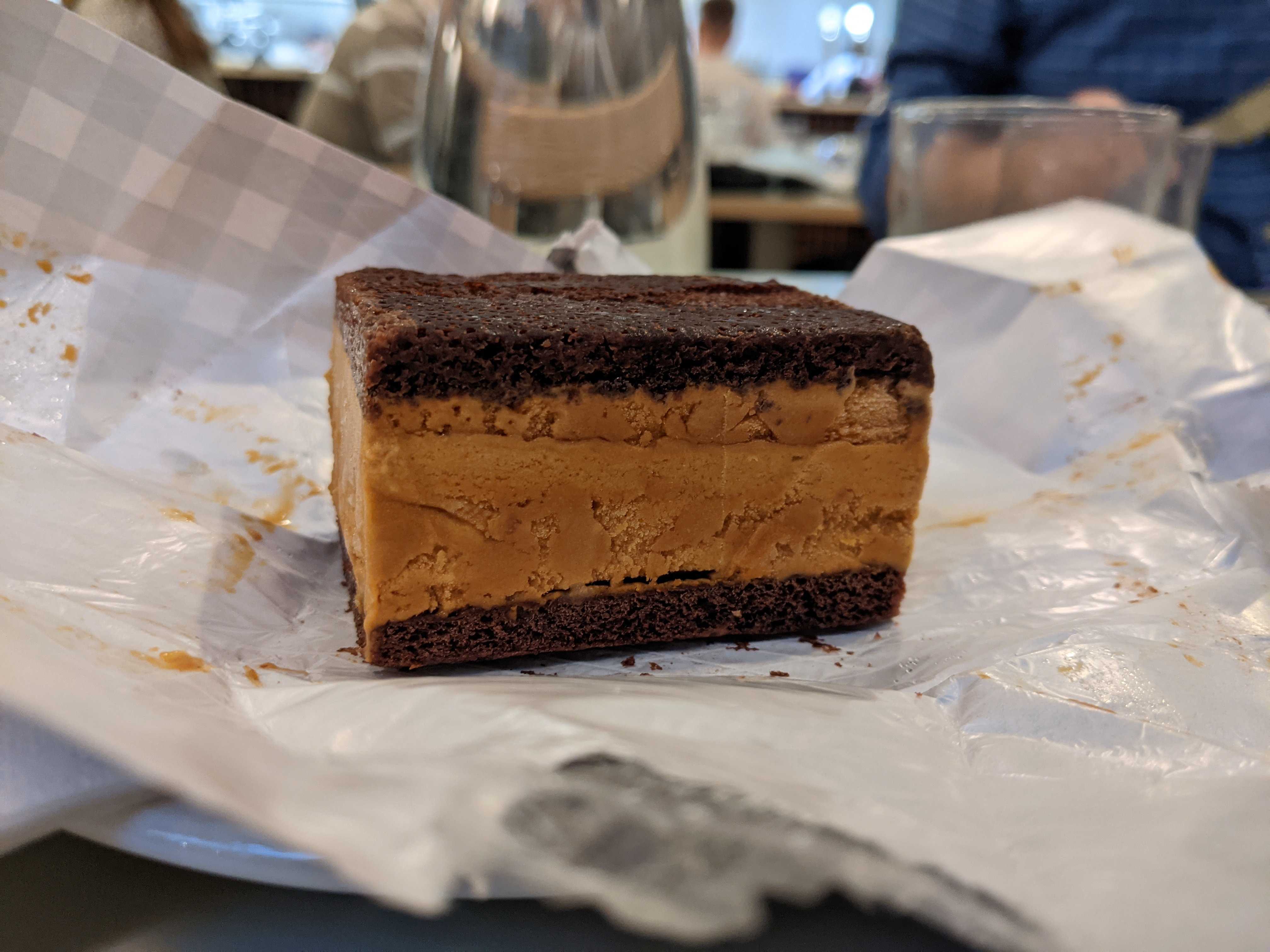 There aren’t any in house desserts available (at this stage at least) but an option is “Ice Cream Sandwiches” (£5) bought in from Happy Endings. We tried cookies and cream which was quite refreshing and with crisp biscuits sandwiching the milky ice cream, almost milk sorbet like. The second was much more of an acquired taste. Miso caramel ice cream was sat between squidgy slices of Guinness cake, this was grown up stuff. I could have had something half the size given how powerful those flavours were but a pleasant surprise when I wasn’t expecting much from these desserts.