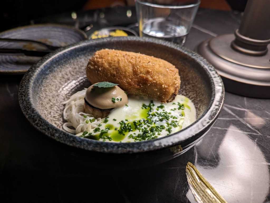 I’ve been a bit slow with getting to this one, particularly as somewhere that should be right up my street. The street in question its literally right up is Hurts Yard, something that old Nottinghamians might remember as much less classy than it now is. Shots at Cucumara anyone? Six Richmond House describe themselves as a “fine dining cocktail bar” and you can see a lot of thought, as well as money, has been lavished on it. There are a handful of tables in the front as an overflow to the main bar/dining space and it’s a really stylish place. A bit of the Great Gatsby with some of its deco touches but with a more of a dark and seductive undertone too. The concept seemed heavily drinks-focussed but with attractive small plates of food to accompany. That said they are taking the food very seriously, initially with Louisa Ellis designing a menu and more recently Reece Elliot being appointed head chef. Both are Masterchef alumni with impressive CVs. As a wine lover their list was attractive and I had a good US Chardonnay, my only want would be more options by the glass across the list but its already better than most places in Nottingham in this regard.