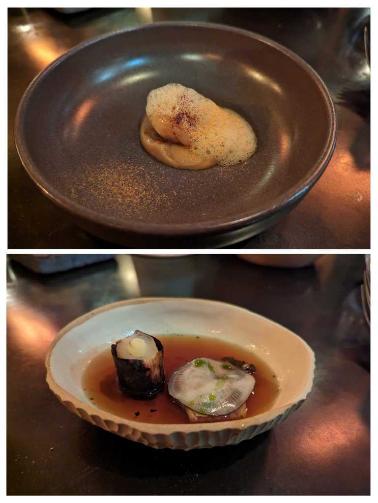 Moving into the menu proper it was in a tasting format of around 12 courses. As ever with a menu this length not every dish can be to your taste or hit the mark unless you’re dining at the absolute highest level. Broadly there was an even distribution of exceptional, good and average dishes. I say average, I am already contextualising this against the cost which is £90 for the food which understandably sets certain expectations. Rather than go through the procession of the dozen dishes as they came I’ll start with the very best. These were pleasingly quite diverse. I loved a partridge dish with homemade kimchi and gochujang. The closest thing to a main course was fallow deer with deer sobrassada with carrot several ways. In its different forms the humble carrot brought sweetness and acidity, a harmonious combination with the richness of the meat. This was also served with a little deer charcuterie that was excellent quality, one of the best I’ve had and some of the top restaurants in the country have served me their versions.