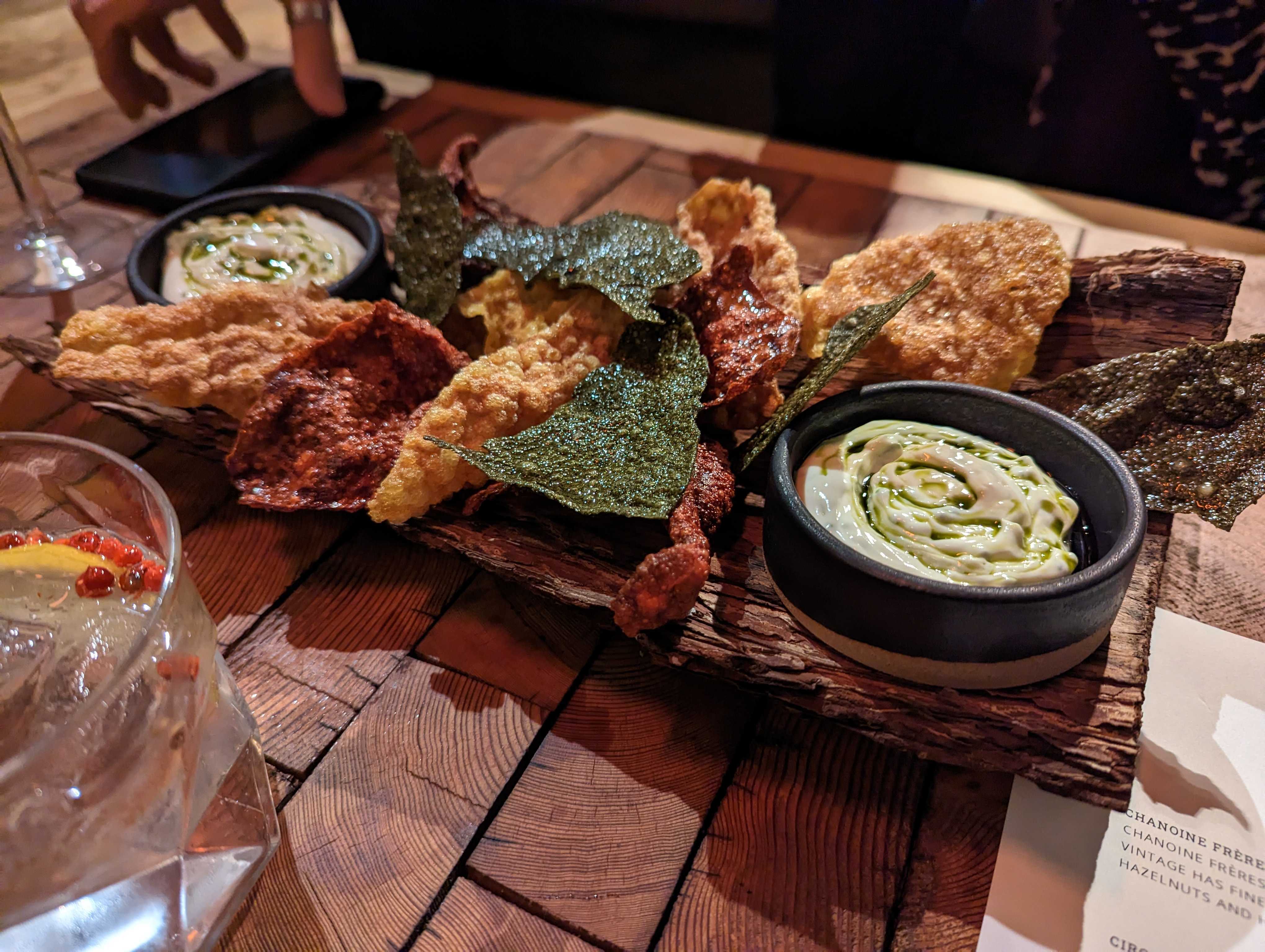 Jericho only opened in September but to little fanfare, at least I feel I’ve heard little about it in foodie circles. It is a touch off the beaten track, in the Vale of Belvior, just over 30 mins East of Nottingham. The setting is a farm owned by the same team behind the restaurant and even in the dark of a January night it was a pretty location. As you approach its lit by both bulb and flame against the shadowy rural backdrop of barns and fields. At this time there is little information online about the experience, menus change regularly due to availability of ingredients so we didn’t quite know what to expect. We were first seated in a separate bar area, that I decided to name the ‘holding pen’, where we were served some snacks. Beetroot and seaweed crisps arrived alongside some venison sausage and trout roe tarts. Enjoyable. simple fare to accompany a pre-dinner drink. On that front their wine list is partly a work in progress but an area they want to take seriously with Tom on board, a passionate young sommelier.