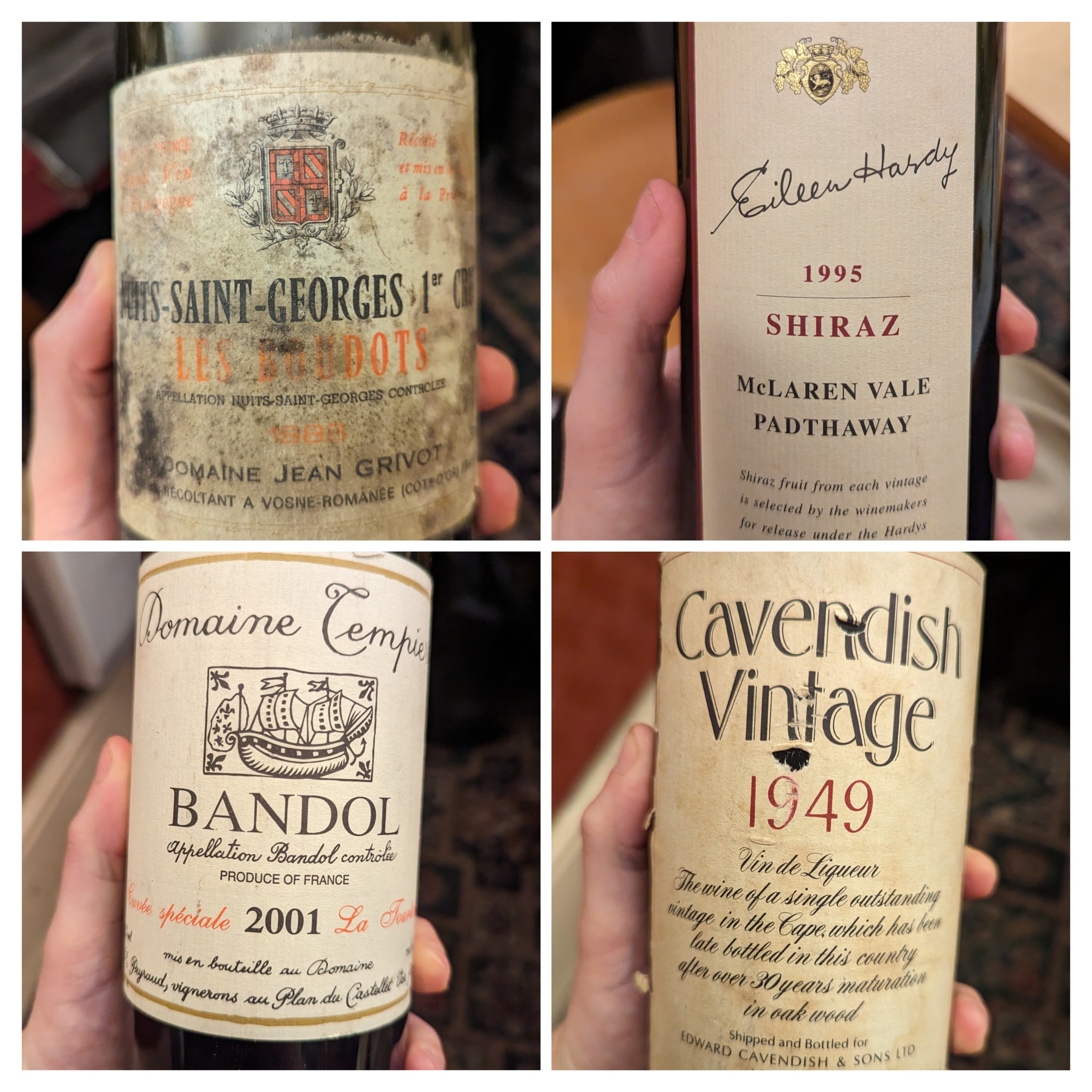 1995, Eileen Hardy Shiraz, Hardys. I’m often unfairly dismissive of Aussie Shiraz but this was one of the most enjoyable bottles I’ve had. There was a little mustiness of the nose that blew off to show some menthol and herbal notes though I didn’t get much eucalyptus. Incredibly fresh and concentrated, more menthol alongside blackberry and a touch of dried fruit and raisin/prune.