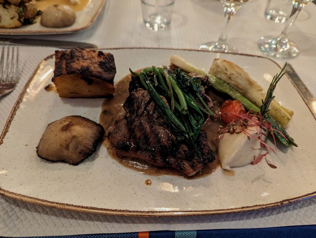 I’ve grown to love escargots , especially after a few trips to Burgundy. There’s something so comforting in garlic butter and great bread, the latter now coming from the fantastic Tough Mary’s Bakehouse. Main courses are equally nostalgic. I had chosen lamb chops which was a quaint and varied plateful. Artichoke, celeriac mash, field mushroom, greens and a slice of gratin are things you wouldn’t find combined on many plates but here it just seems to work. The lamb itself had both a deep charred flavour and sweetness from the meat, happily still pink in the middle. A classic jus was delicious, salty, rich and a great foil to the rest of the plate, though lacking in wild garlic flavour I had been promised on the menu. Those many accompaniments were all executed well too, particularly the gratin potatoes which were crispy on the outside and unctuous in the middle. A dessert was not required but a creme brulee, between two, was a reminder of the classics to finish. Silkily textured underneath with the perfect sugar thickness atop.